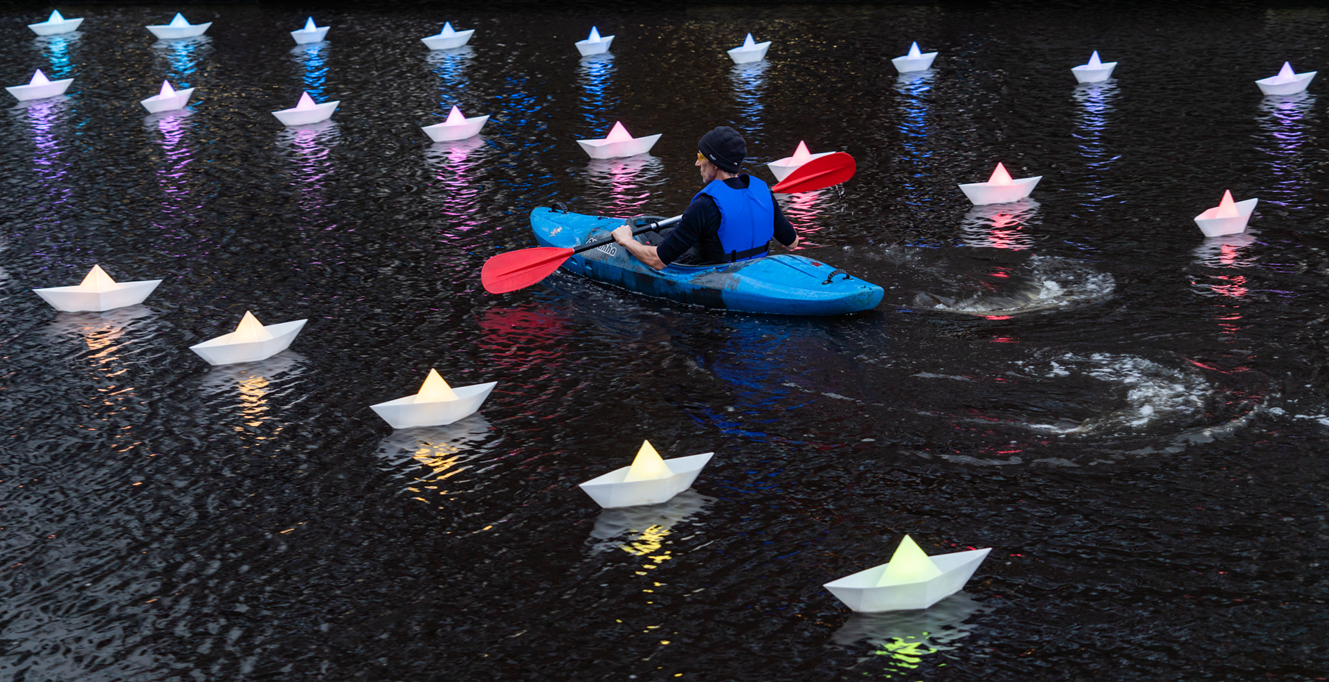Voyage is an installation art which was held in Light Night Leeds in October 2019. It was created by Aether & Hemera, an Italian based light show company. The artwork consisted of a total of 160 LED boats, bundled in 5 lines, and floated on the water, in Leeds Dock. My role was to photograph the people behind it, during the installation. Simple…